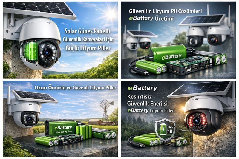Solar güvenlik kameraları gündüz saatlerinde güneş paneli üzerinden enerji üretir, gece ve güneşsiz zamanlarda ise bu enerjiyi bataryadan kullanır. Bu nedenle kullanılan pil: